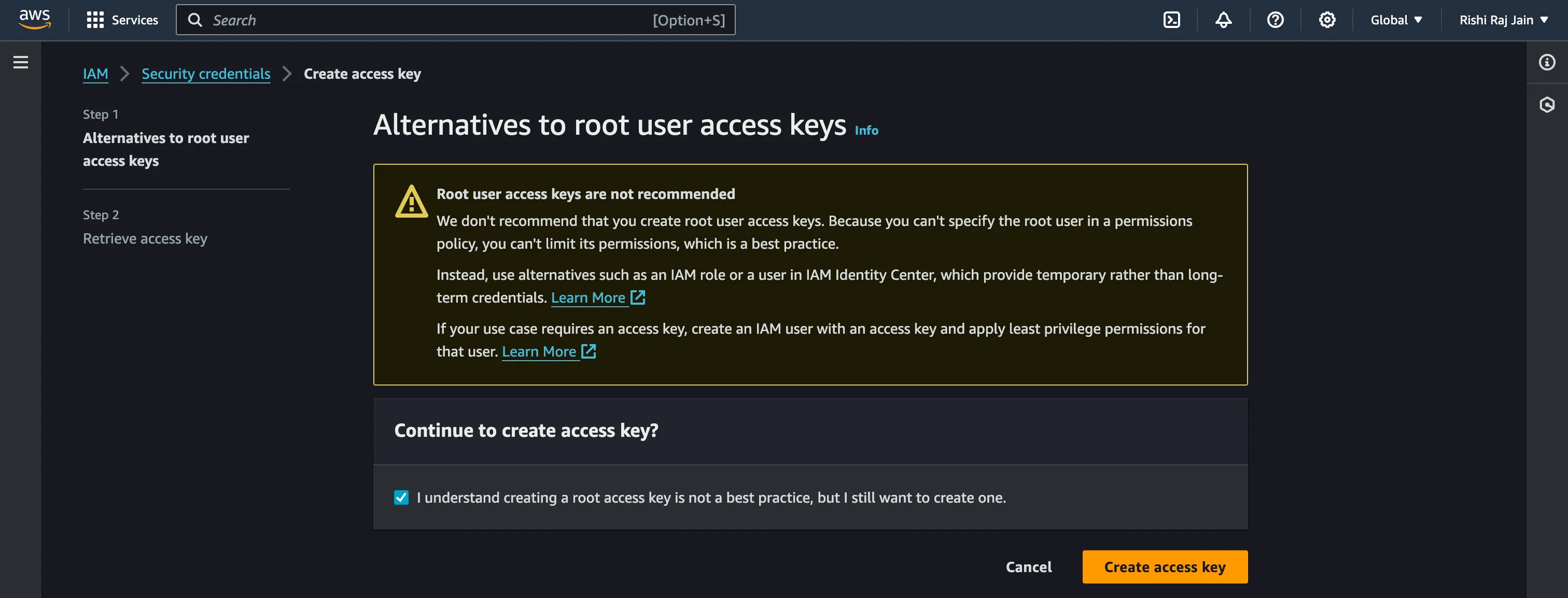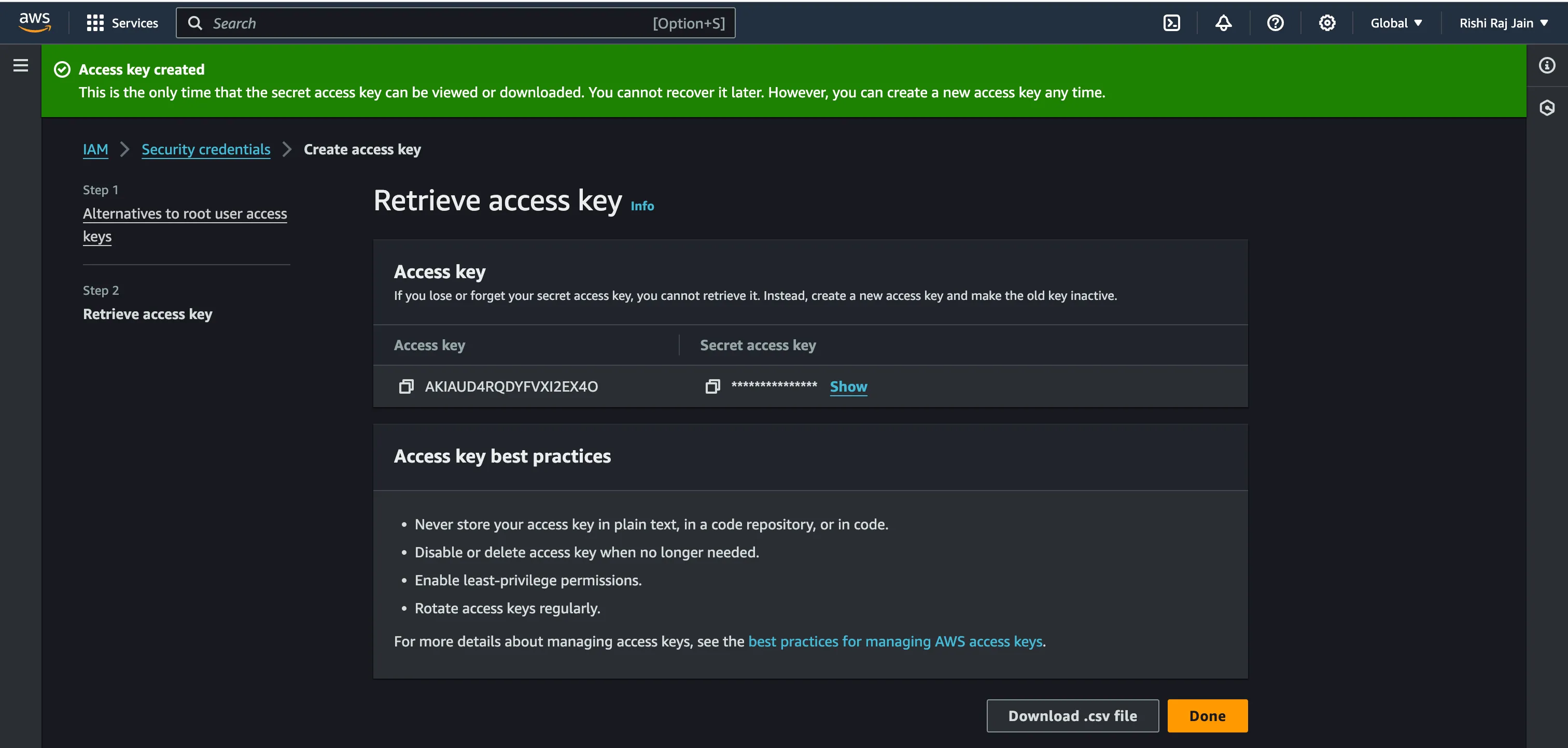 Again, click on **Create access key**.